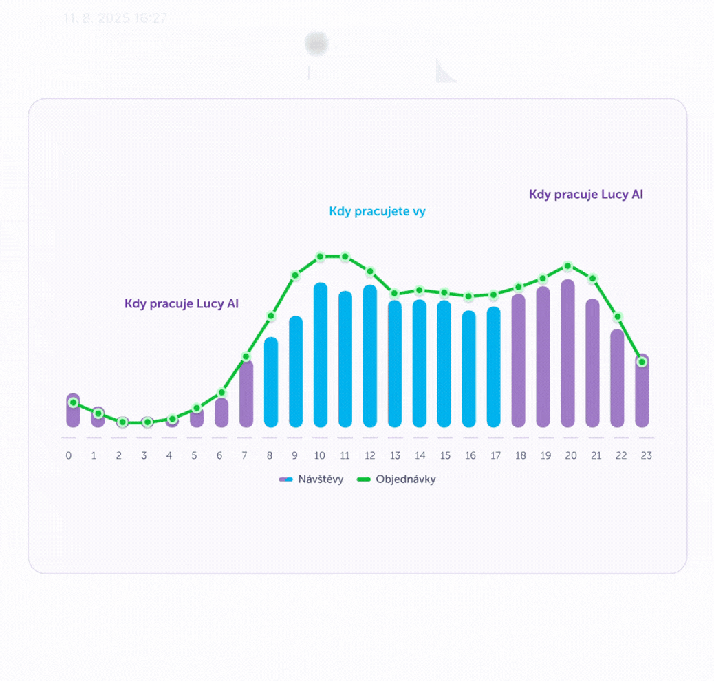Více než polovina dotazů vyřídí automaticky Lucy AI. Zákazníci dostávají odpověď okamžitě a v mnoha případech je AI dovede k objednávce.