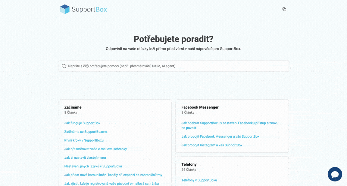 - a je provázaná s ostatními kanály (chat, formuláře, AI).