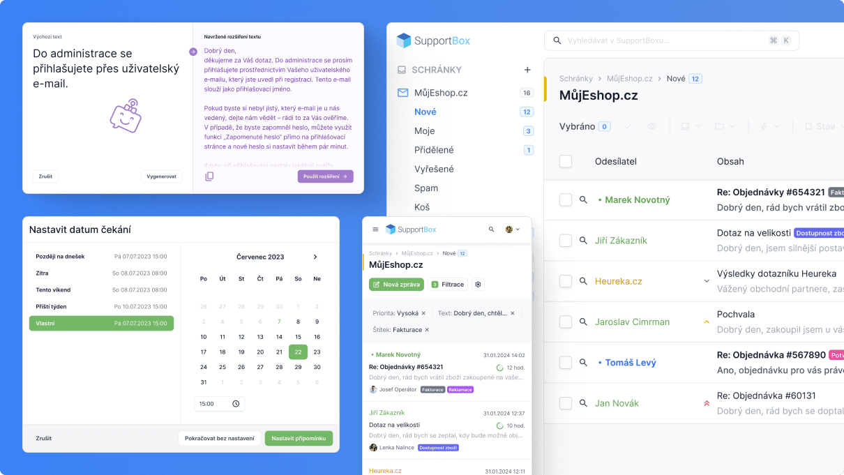 Bez chaosu v e-mailech, chatech a zprávách ze sociálních sítí? Pomůže vám SupportBox! Díky němu zvládnete komunikaci sjednotit, nastavit priority a reagovat rychleji.