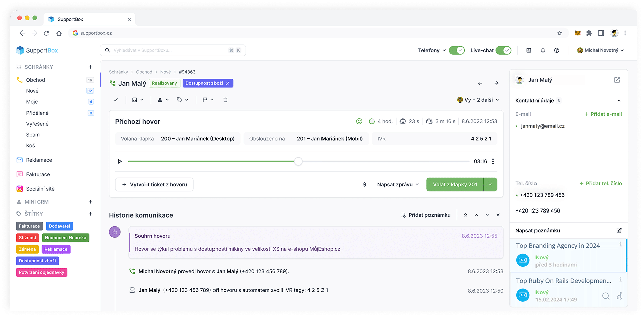 Právě tady je nejvíc cítit rozdíl mezi multikanálovou komunikací (více kanálů vedle sebe) a smysluplným mixem kanálů, který spolupracuje. V takovém případě vám pomůže jednotný helpdesk. Vyzkoušet můžete SupportBox, a to zcela zdarma.