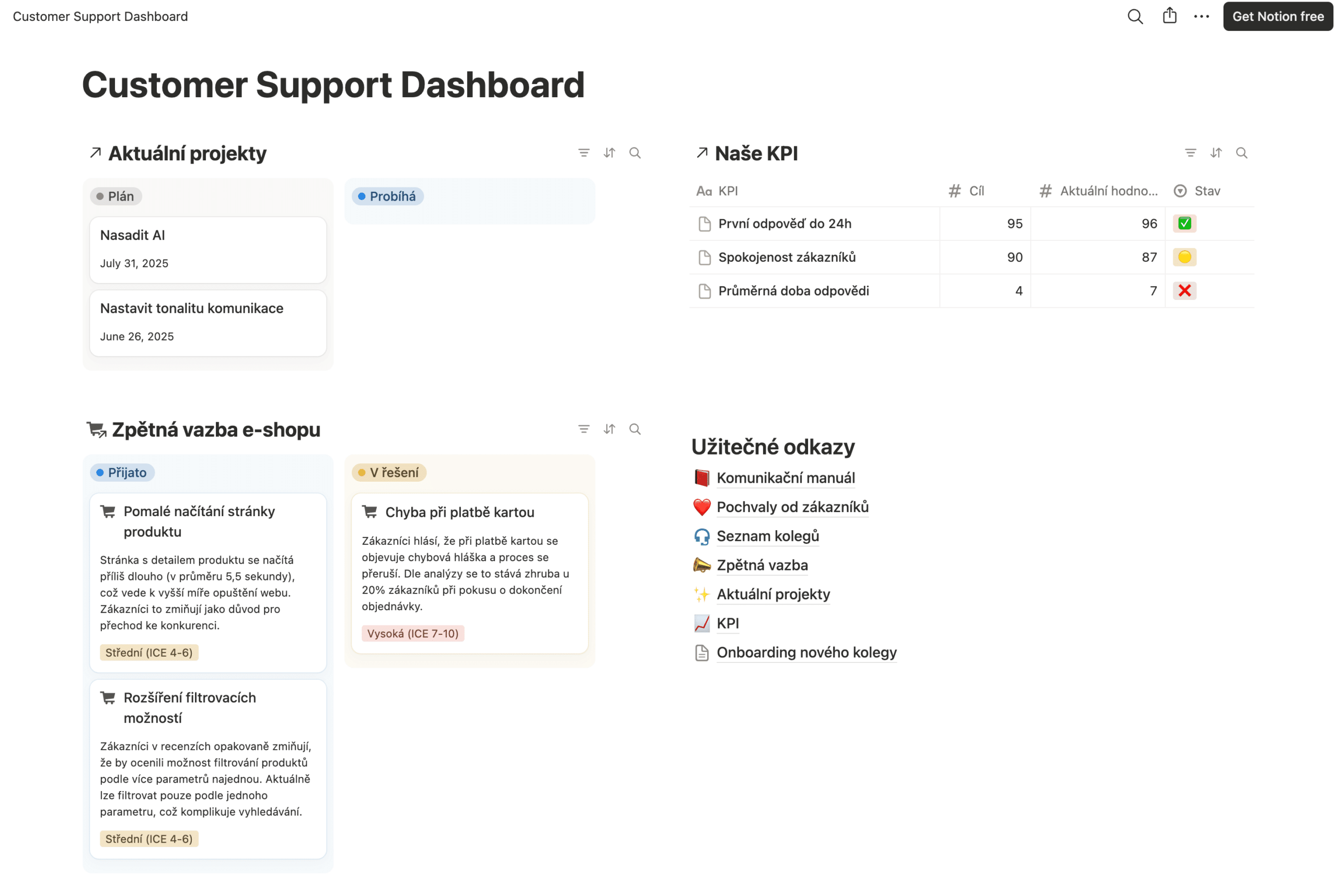 Ukázkový dashboard zákaznické podpory